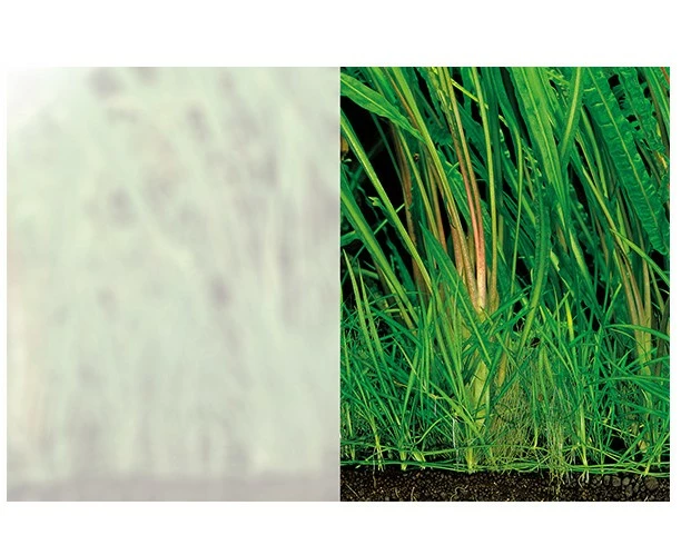 The semi-opaque background film for aquarium from Aqua Design Amano also disguises the aquarium technology behind the tank. Even thick, dark hoses are only dimly visible, transparent hoses or thin cables become blurred and practically invisible.