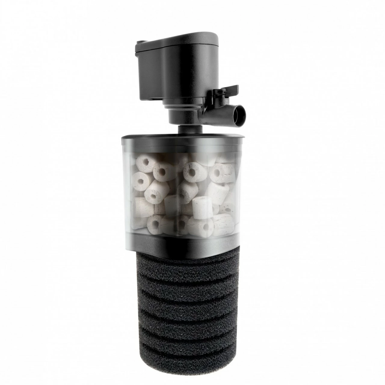 The TURBO filter can be installed and configured in three different ways: with sponge only, with container only, and container plus sponge.