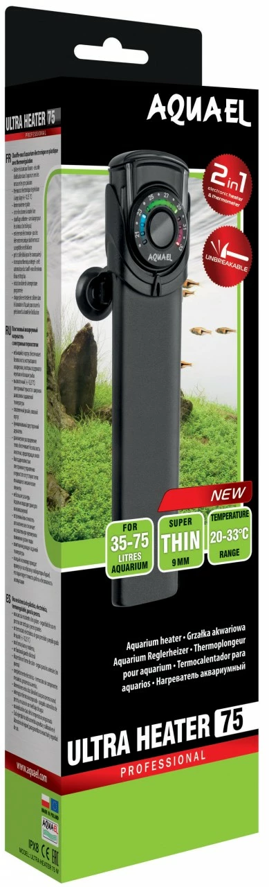 Modern control heaters UltraHEATER have a housing made of a special plastic mixture. This makes them practically unbreakable and extraordinarily insensitive, even to strong shocks and vibrations. They are characterized by a functional shape: due to their very flat, compact design, they can be easily concealed in the aquarium and are ideal for tanks where there is a lack of space anyway.