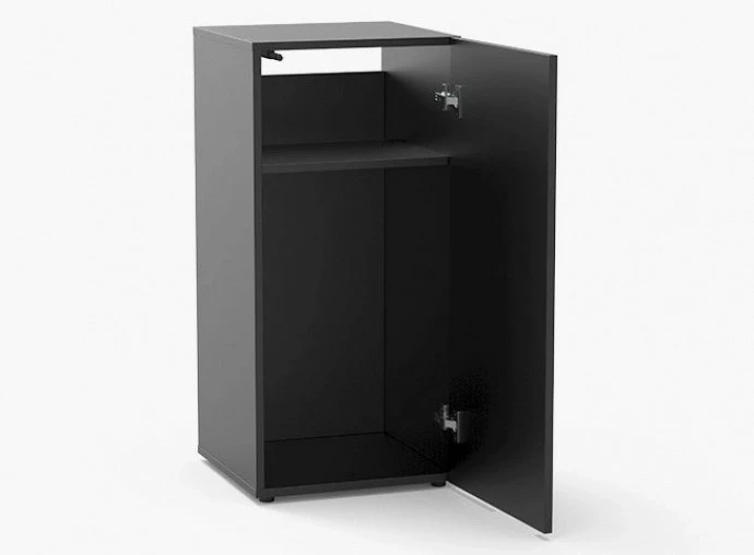 The base cabinet is easy to assemble and has a sturdy construction to support the weight of the aquarium. The door of the base cabinet opens with a slight push and provides easy access to the interior. The base cabinet is also equipped with adjustable feet to ensure perfect alignment of the aquarium.