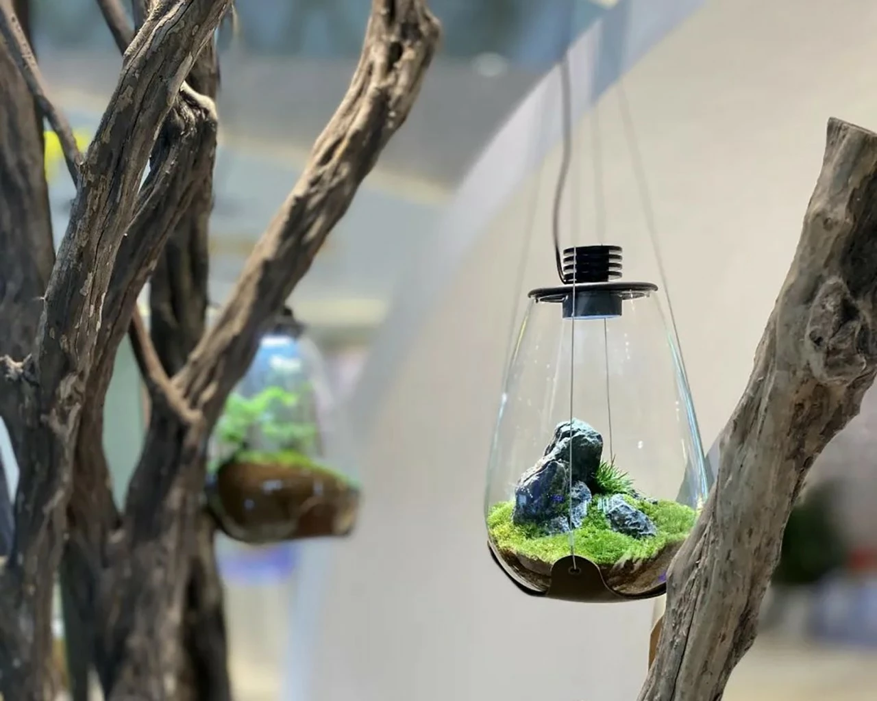 The BioBottle Water Drop plant jar with LED lighting can be placed or hung. In this glass you can create a beautiful biosphere for plants, a chic and modern plant terrarium. Rather small aquarium plants and houseplants for a humid environment are just perfect for this plant glass.