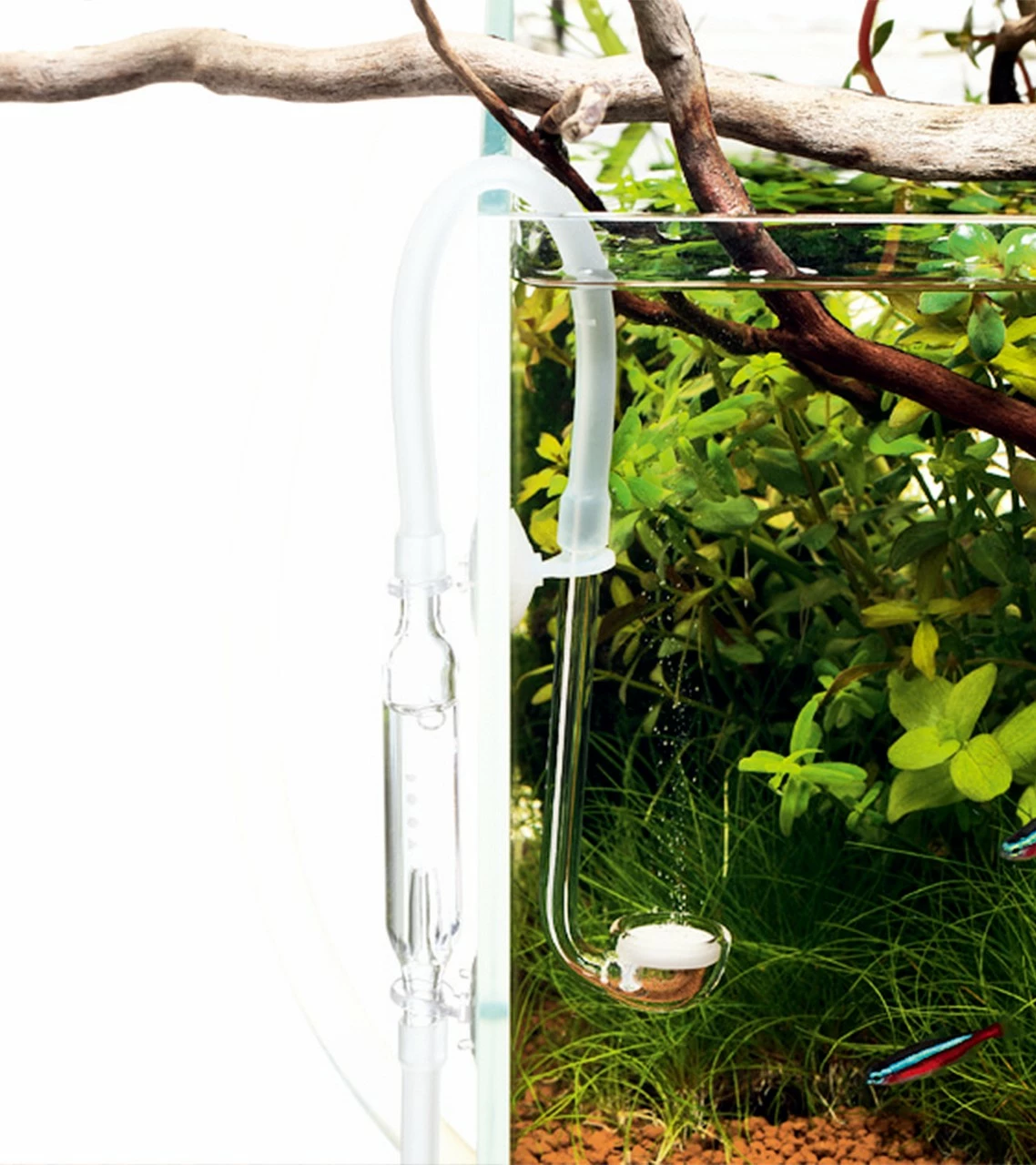 With its simple and elegant design, it is almost unnoticeable in the aquarium. With the help of the supplied suction cups, it can be attached to an aquarium pane in no time at all. The CO2 hose required for operation is not included, but you can find it in our store!