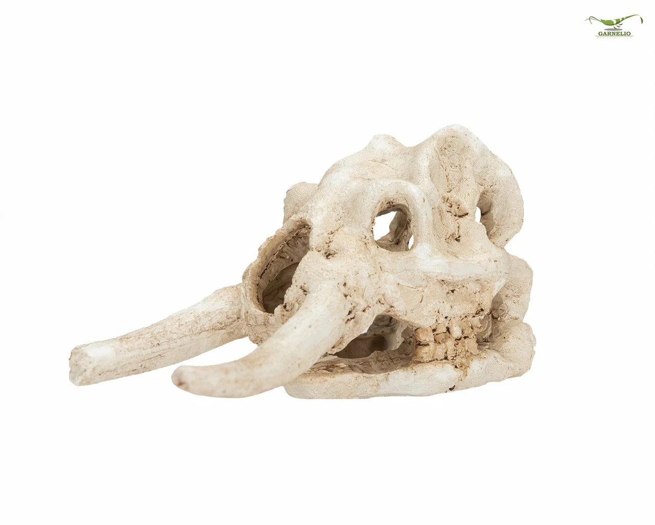 The elephant skull made of polyresin, i.e. a synthetic resin, can be used in the aquarium without any problems and is completely harmless, because it does not change the water values and also does not release anything into the water. This allows you to create a prehistoric underwater world in no time at all, which is unparalleled! With other great decorations that we carry in the store can conjure up such a spectacular underwater world!