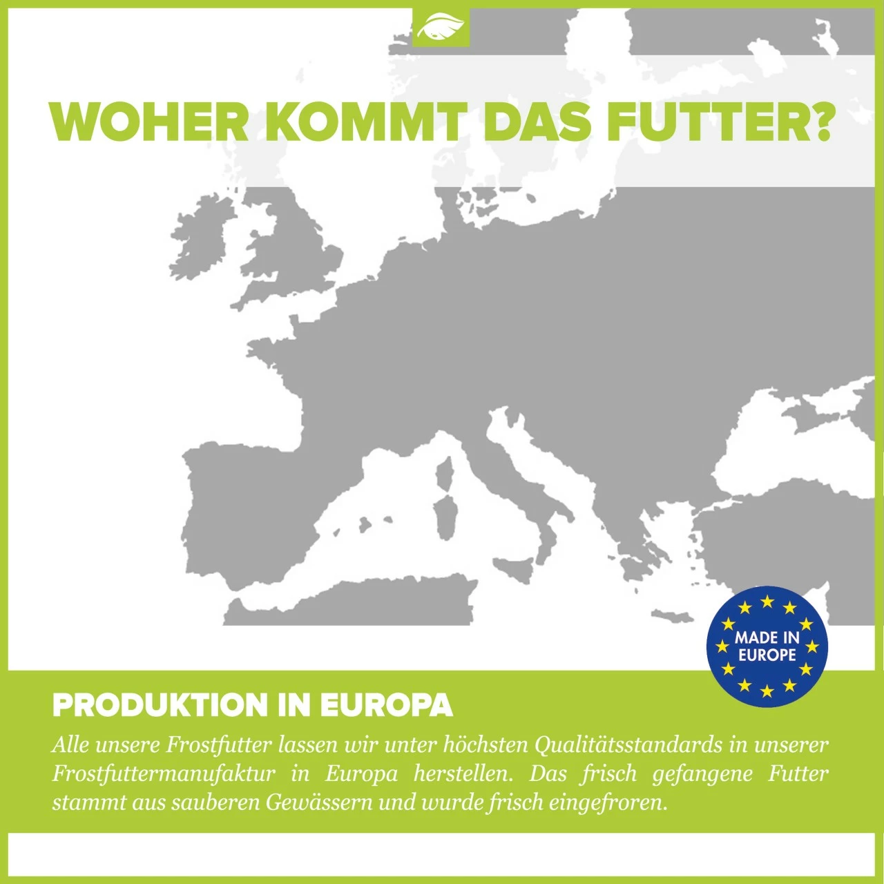 NatureHolic frozen food is produced in a special shock freezing process. Immediately after catching, the live food is frozen so that all valuable ingredients are preserved. Easy removal of individual portions from the blister also saves time and money, thanks to the variety of our bundle you can diversify the menu of your pets.