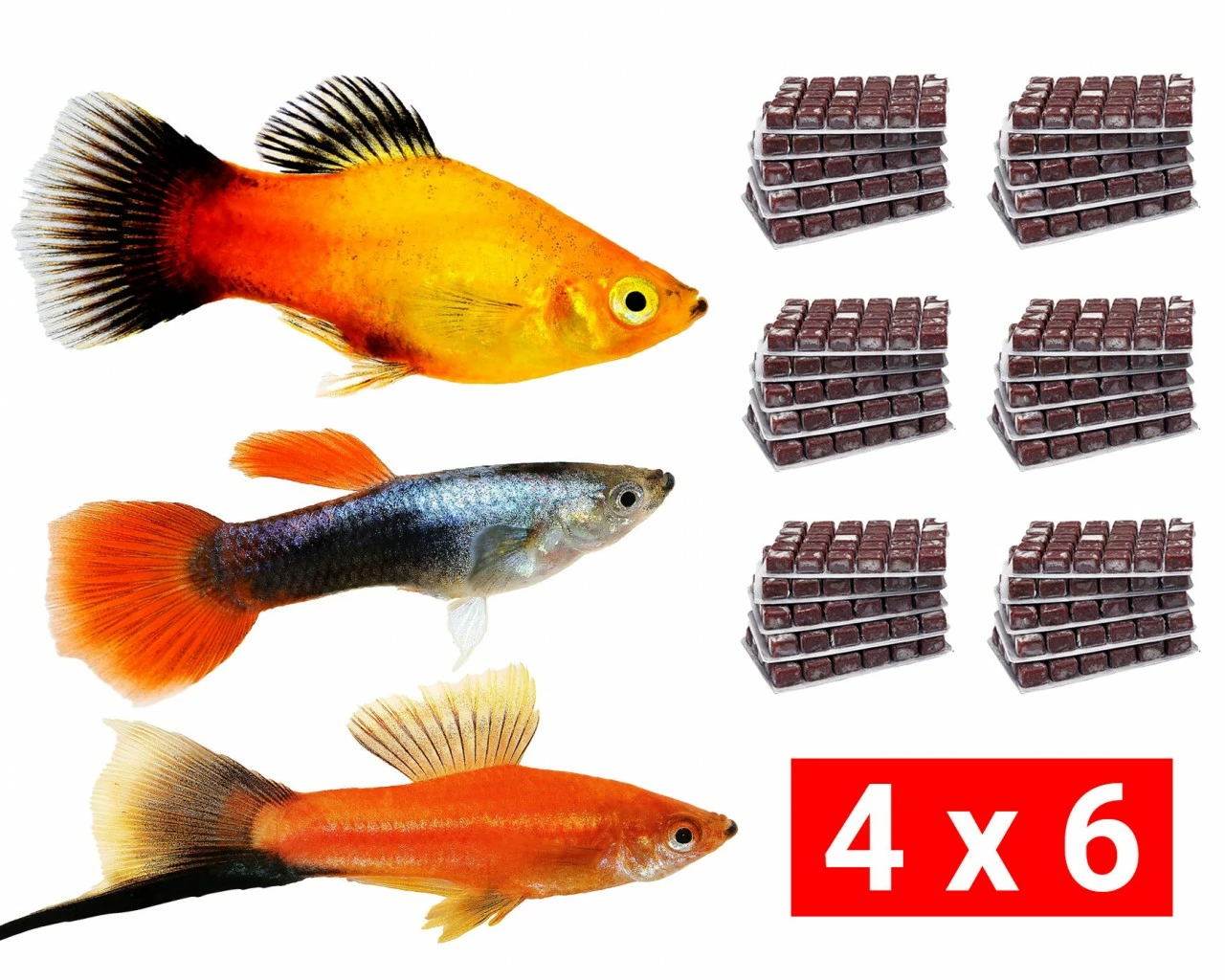 With our frozen food bundle for livebearers you spoil your guppies, platies, mollies and others balanced and healthy. Also in your habitat, the fish nibble insect larvae or small crustaceans, so you can offer a varied and natural menu. 6 popular varieties are included in the 24-panel bundle, eliminating the need for time-consuming live food production and saving time and money.