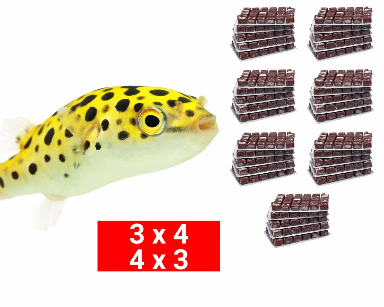 Also in their habitat puffer fish feed mainly on live food and animal protein. Some puffers are difficult to convince of common dry food in the aquarium. With our frozen food bundle for puffer fish you can remedy this situation and spoil your pets in a natural way with tasty and healthy treats. The 24-piece bundle contains 6 different varieties, with which you can feed your animals healthy and varied.