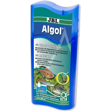 JBL Algol can be used to quickly and reliably remove algae from freshwater aquariums. It removes all types of algae, including floating algae that produce green water. For the product to be most effective, it is preferably applied in the morning when the pH is still low. A 30% partial water change is recommended before use.