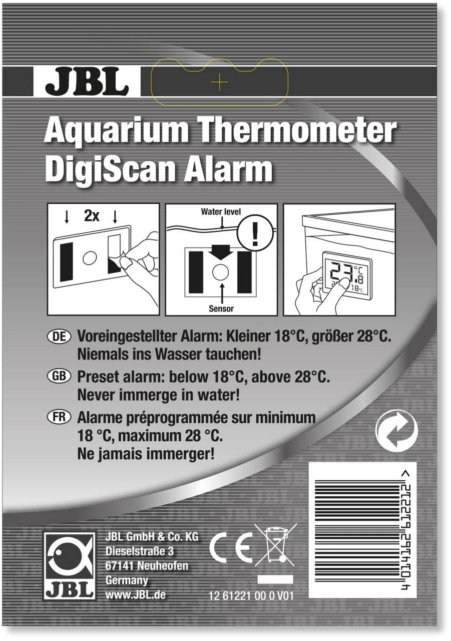 - Scope of delivery: 1 digital aquarium thermometer with alarm function, incl. battery (AG10) and Velcro sticker for attachment