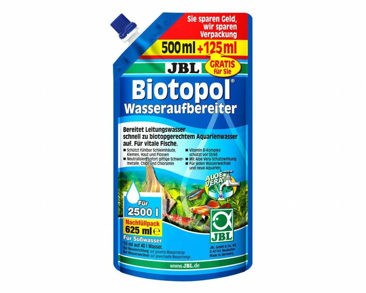 - 500 ml + 125 ml free addition – you save money – JBL saves packaging. Active environmental protection in aquaristics.
