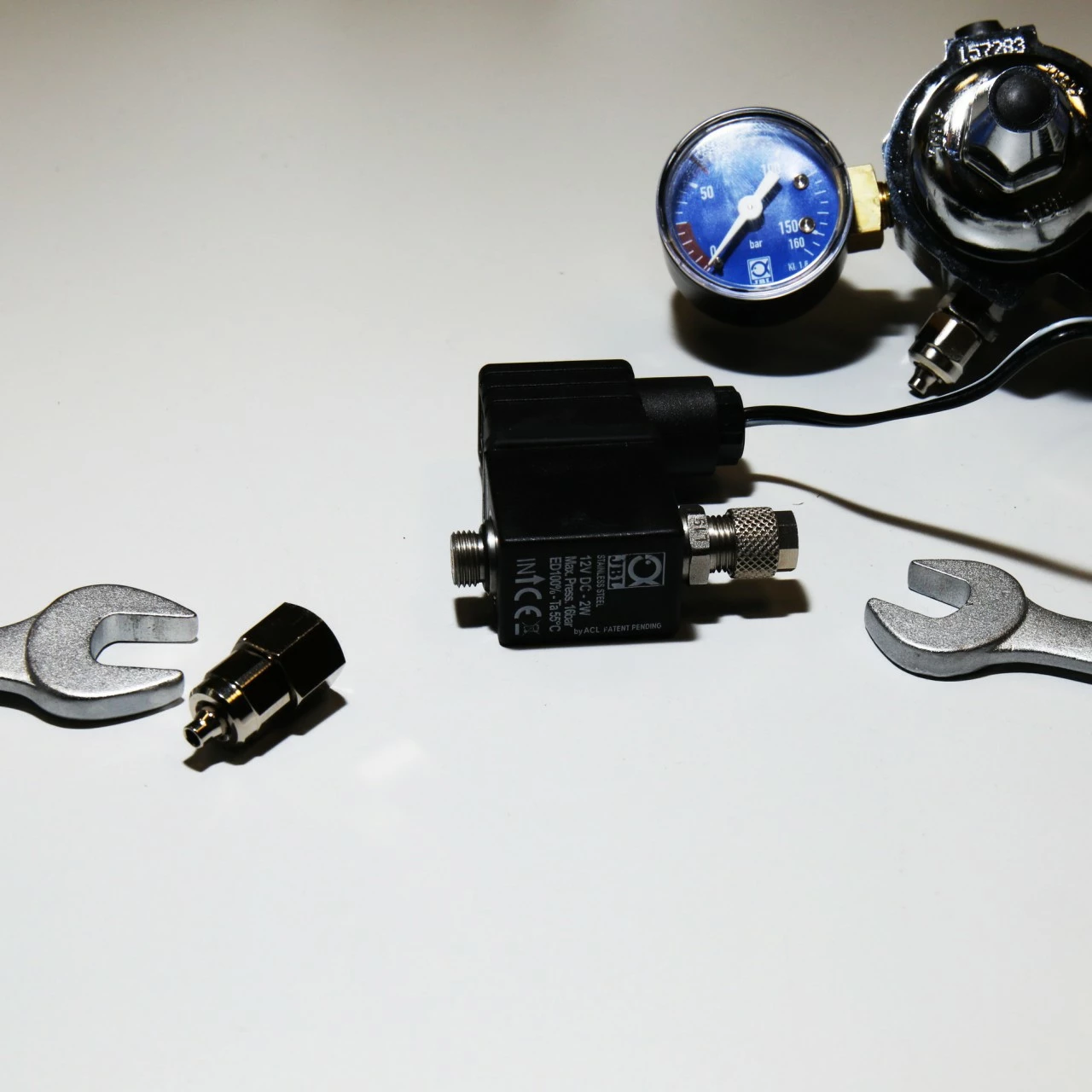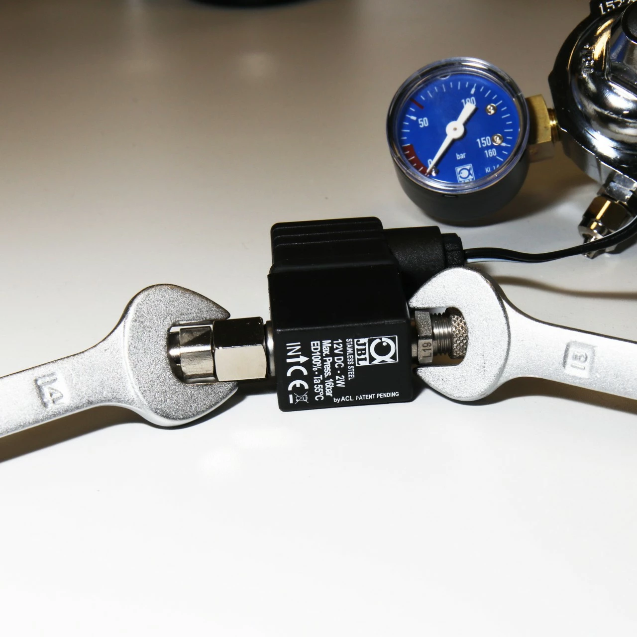- Easy to use: Integration of the solenoid valve in the feeding CO2 hose of the fertilizer system or mounting on the fitting of the pressure reducer