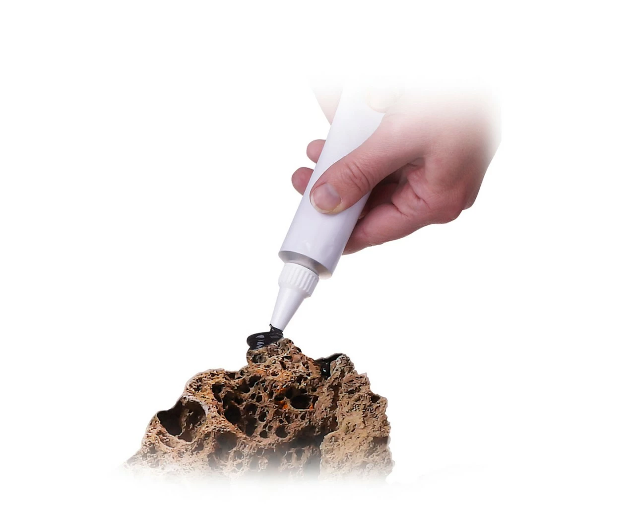 When gluing decorations, care should be taken to ensure that the biofilm on the areas to be glued has been removed very well, as this (slippery surface due to bacteria) can prevent permanent gluing. New and unused materials, on the other hand, have no biofilm and are therefore easier to bond. The surfaces to be bonded should in any case be clean, free of dust and grease, and if bonding under water, as free as possible from biofilms and other coatings. Large bondings can be bonded together by applying ProHaru Universal in strips. When bonding under water, adhesion may be slightly less than on dry substrates.