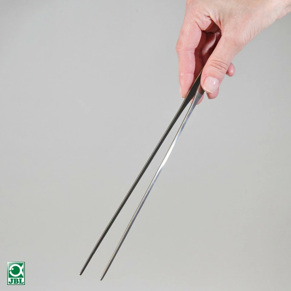 The JBL ProScape Tool P slim line tweezers can be used to place individual aquatic plants that need to be inserted deep into the ground, such as very fine ground cover, but it is also ideal as a decorative aid. It has a slim and straight design with a length of 30 cm and is super suitable as an „extended arm“ for work in the aquarium, especially near the bottom. Even for combing out rock wool from in-vitro plants, the slim tweezers are better suited than, for example, scissors.