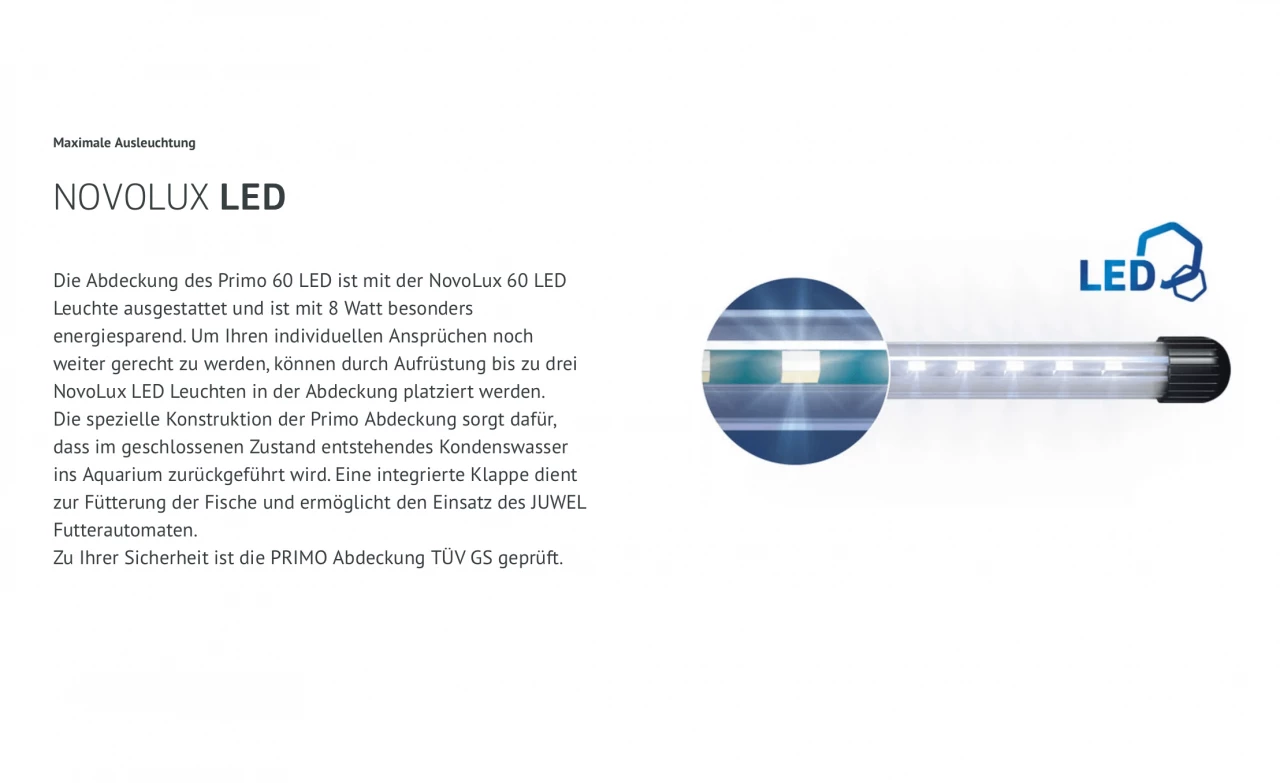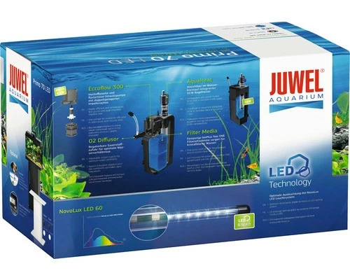 For perfect aquarium lighting, the cover of the aquarium is equipped with the energy-saving NovoLux LED lamp . The classic design of the aquarium set fits into any room and makes it a highlight. Treat yourself to this great aquarium complete set for an uncomplicated entry into aquaristics.