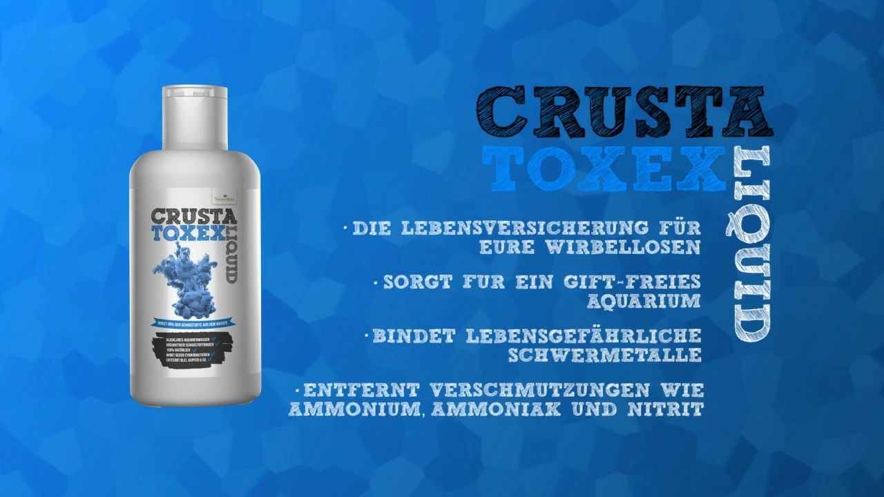 The immediately effective Crusta Tox Ex Liquid binds toxic and other undesirable substances in the aquarium water. Crusta ToxEx Liquid works physically and binds heavy metals such as copper, lead, silver and others as well as medication residues and organic nitrogen compounds (ammonium, ammonia and nitrite), removing them completely from the aquarium water before they can harm your shrimp. For crystal clear, healthy water and well-being for aquarium inhabitants. ToxEx can help prevent spawning fungus in fish and invertebrates. It can improve the general well-being of your aquarium inhabitants and besides make life difficult for cyanobacteria / blue-green algae. Can also be used as an emergency remedy for acute poisoning – we recommend double the dose for acute problems!