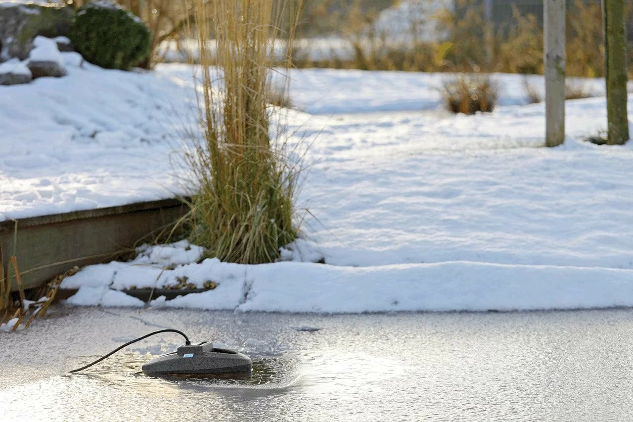 Due to its active heating element, the Oase Icefree Thermo 330 is suitable for both permanently cold frost periods and shallow ponds. Warmer temperature zones at the bottom are maintained.