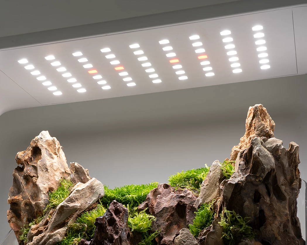 63 LEDs with 0.2 watts each and depending on the setting with a luminous flux of 5,000-30,000 lux provide optimal growth light for the plants and plant-friendly conditions in the Paludarium Base. Please note: Individual LEDs cannot be replaced.