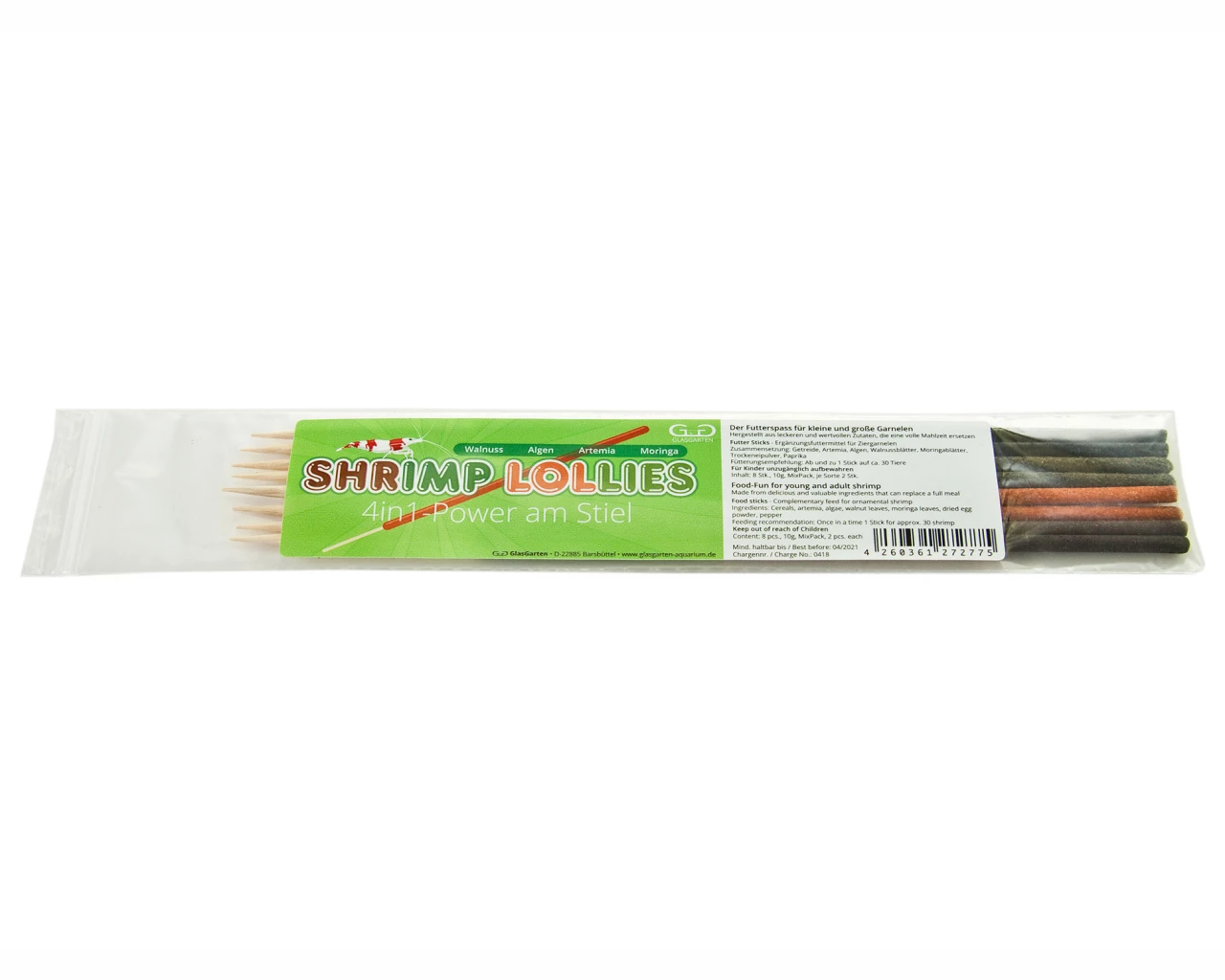 The GlasGarten Shrimp Lollies 4in1 Power are composed of the four popular Shrimp Lollie varieties Algae, Walnut, Moringa and Artemia. The 4in1 Power Shrimp Lollies are a biologically valuable supplementary food for shrimps, crayfish and snails in freshwater aquariums and offer the invertebrates in the aquarium a lot of variety and a real treat with valuable additional benefitsevery time.